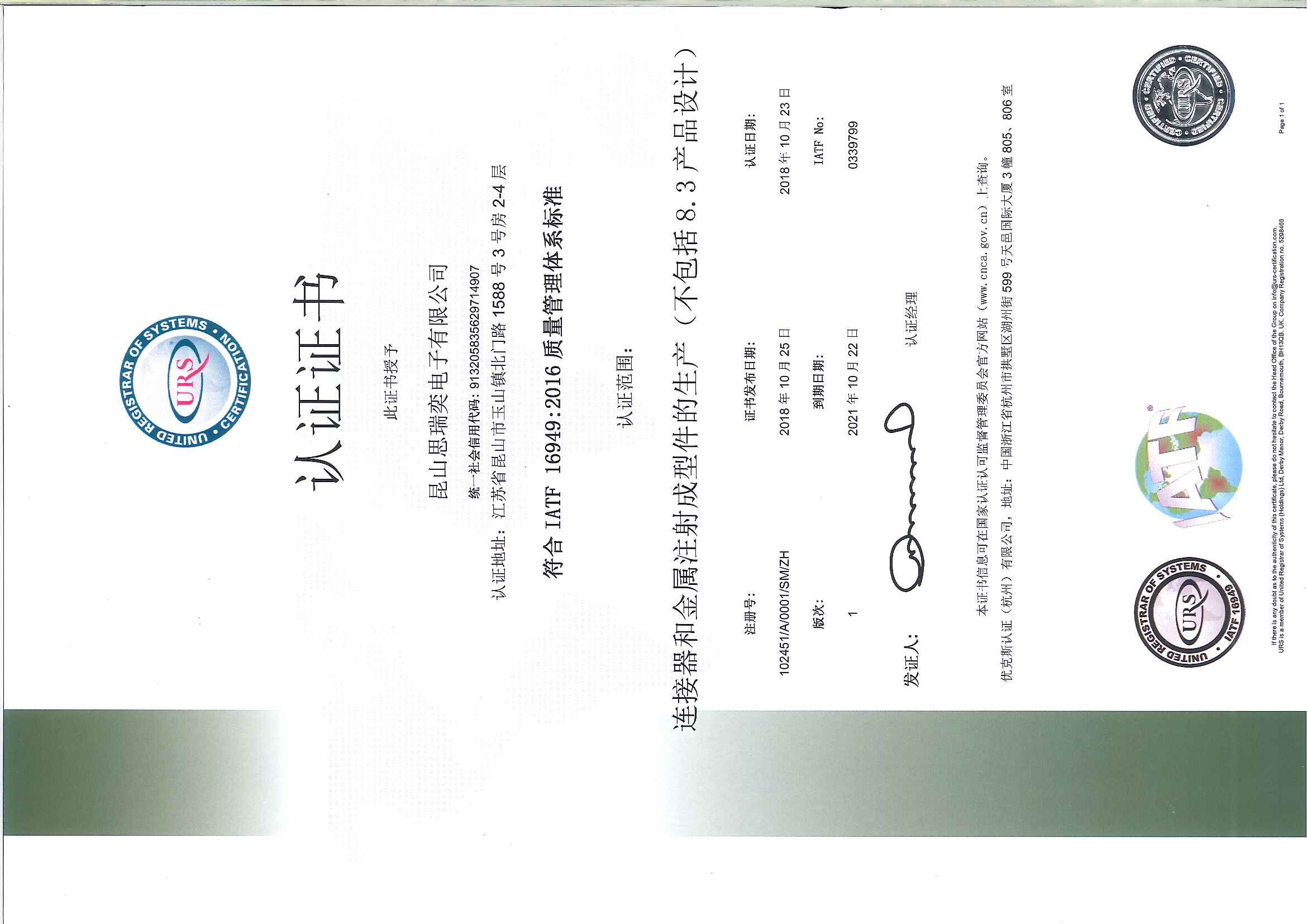 思瑞奕電子有限公司成立于2010年10月,注冊資金7500萬人民幣,總部位于江蘇省昆山市,在重慶、江蘇東臺、江蘇太倉設(shè)有分廠,公司于2011年通過ISO9001/ISO14001認(rèn)證,2013年通過高新技術(shù)企業(yè)和TS16949(IATF)體系認(rèn)定,2016年先后通過知識產(chǎn)權(quán)管理體系認(rèn)證、安全生產(chǎn)標(biāo)準(zhǔn)化認(rèn)證,2017年獲頒江蘇省民營科技企業(yè)、2018年先后獲得蘇州市人民政府認(rèn)定企業(yè)技術(shù)中心、科技部認(rèn)定中小型科技企業(yè)、江蘇省最具成長性高科技企業(yè)、2020年獲得江蘇省人民政府認(rèn)定企業(yè)技術(shù)中心、2021年獲得蘇州市瞪羚計劃入庫企業(yè)、江蘇省省級工程技術(shù)研究中心、江蘇省專精特新中小企業(yè)等榮譽稱號......